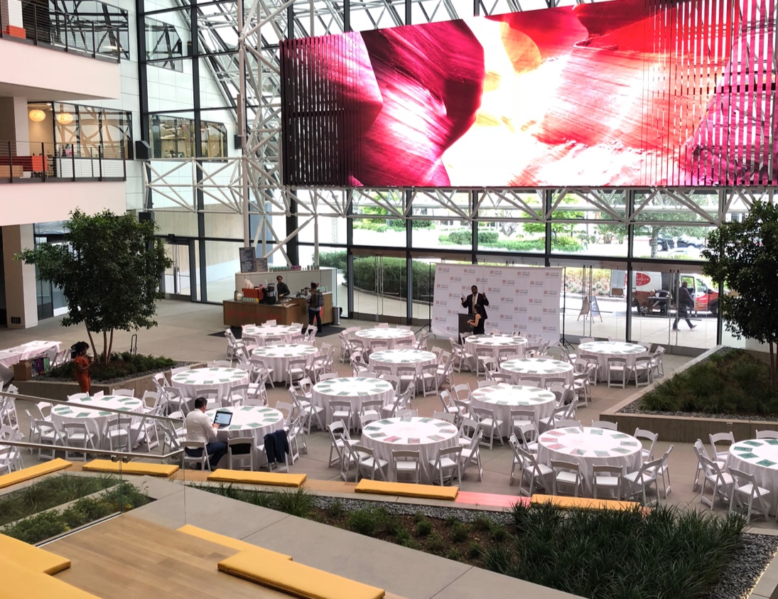 The Atrium is the heart of One Culver. Simultaneously functioning as lobby and event space, the Atrium seamlessly shifts between a bustling pre-function environment to the life of the party. The 80ft media wall suspended in glass above the space is sure to stun guests at any type of event.